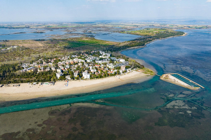 Una barca naviga veloce nella "vasca" di Grado Pineta